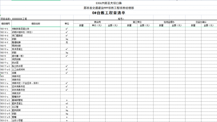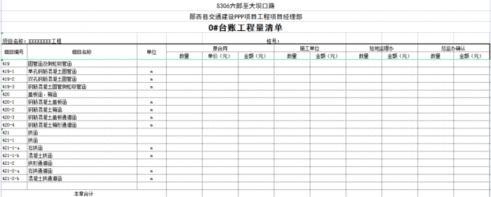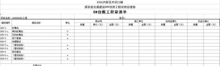 子目號(hào)、子目名稱、單位、工程數(shù)量及合價(jià)是設(shè)計(jì)圖紙規(guī)模的一種反映形式,是“0#”臺(tái)賬與工程量清單相互聯(lián)系的紐帶,也是圖紙工程數(shù)量向“0#”臺(tái)賬工程數(shù)量轉(zhuǎn)換的根本,尤其是子目號(hào),它的準(zhǔn)確性直接影響了“0#”臺(tái)賬的質(zhì)量。